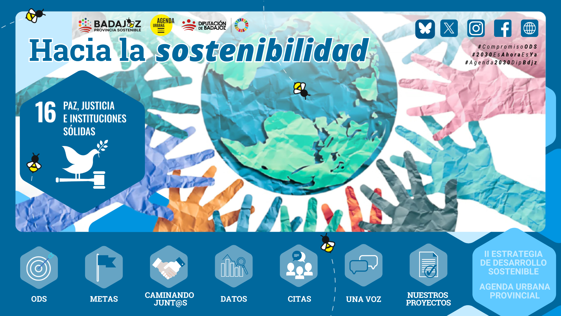 Tras el balance realizado a finales de 2023 de la I Estrategia de Desarrollo Sostenible, la Diputación de Badajoz, tras un proceso de participación interna y externa, ha diseñado la II Estrategia de Desarrollo Sostenible y la Agenda Urbana Provincial, con una metodología expandida de gobernanza y una mirada activa hacia todos y cada uno de los municipios de la provincia para que también ellos vayan incorporando sus políticas y acciones a la Agenda 2030, porque no existe ni un solo objetivo en esa Agenda que no se vea afectado por la acción local, la más cercana a la gente.